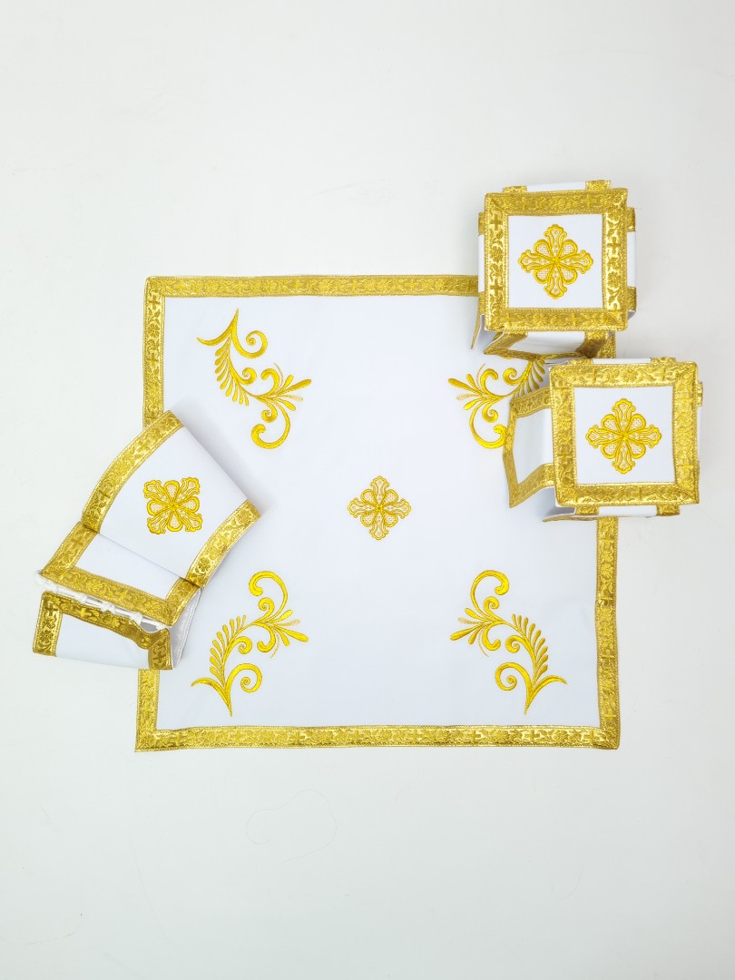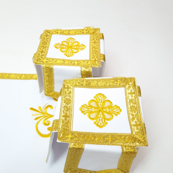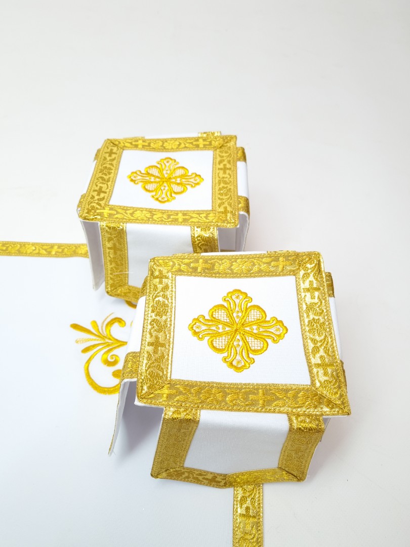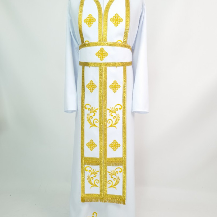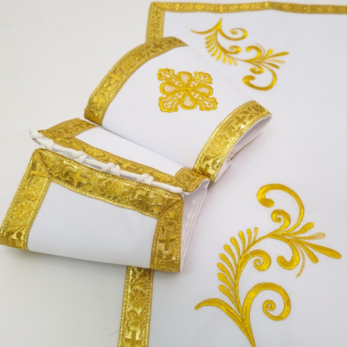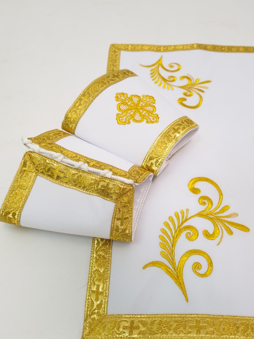 - Замовити ритуальний одяг з вишивкою пропонується в комплекті з іншими аксесуарами - повітрям, нарукавниками, єпитрахиллю, стихарем, поясом, покровом.