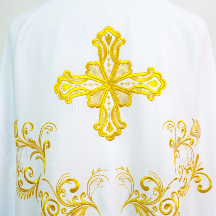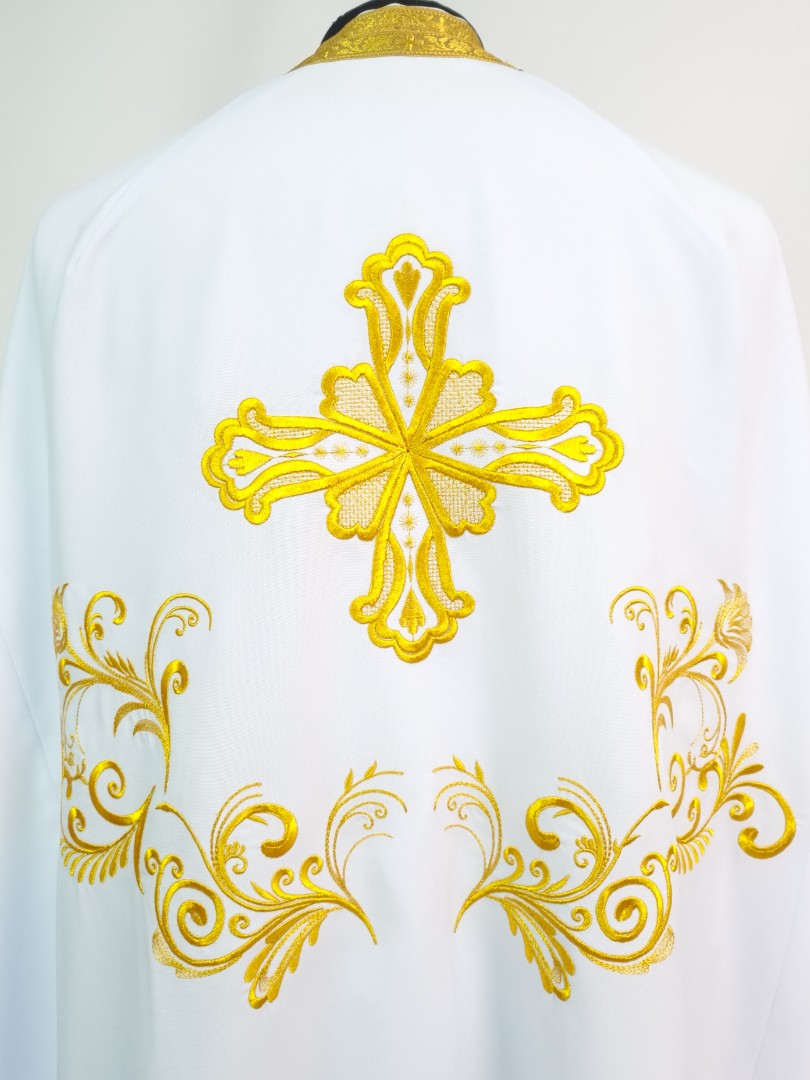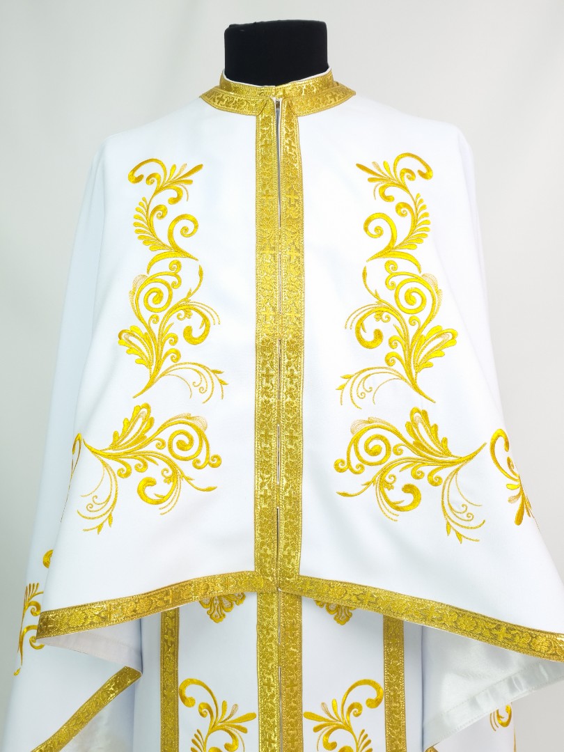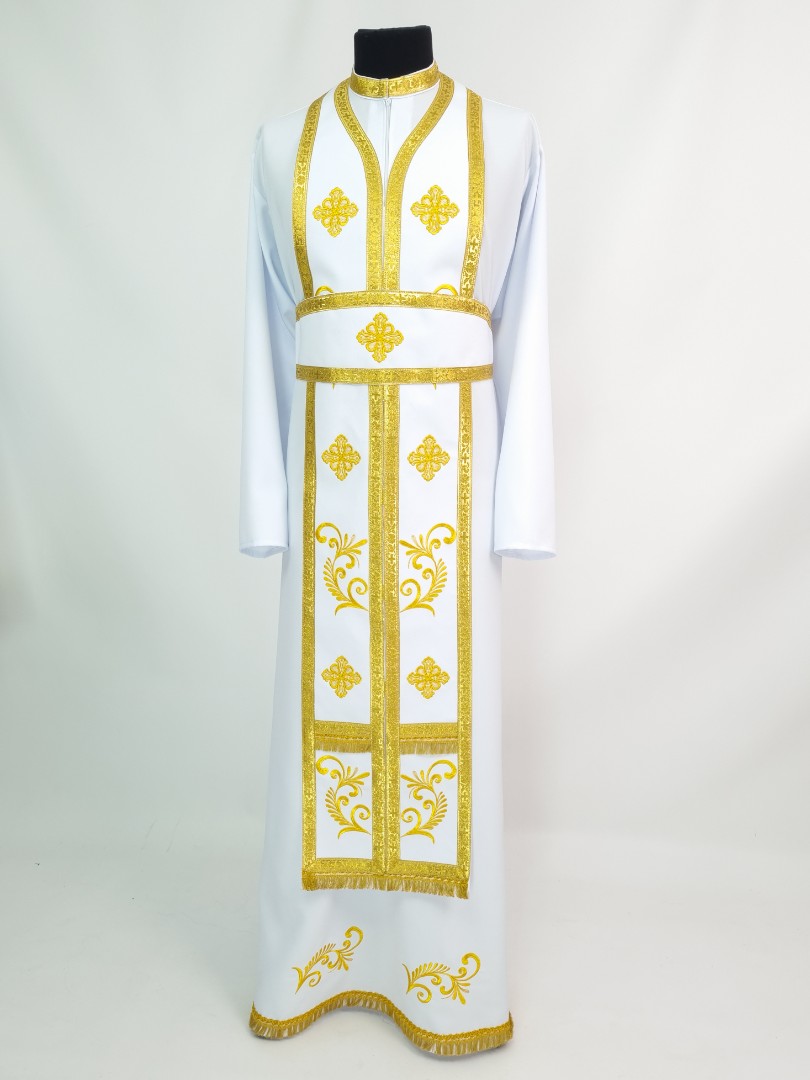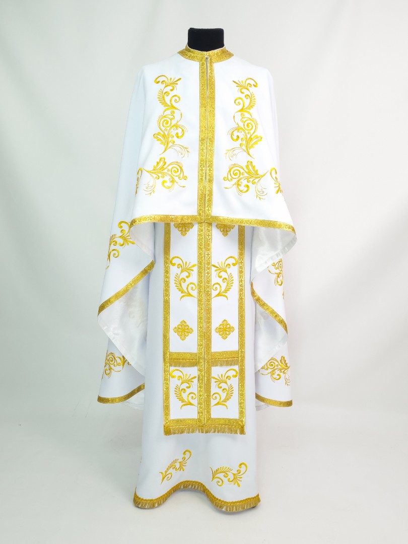 - Церковне вбрання для священнослужителів шиють з тонкого габардину білосніжного кольору.