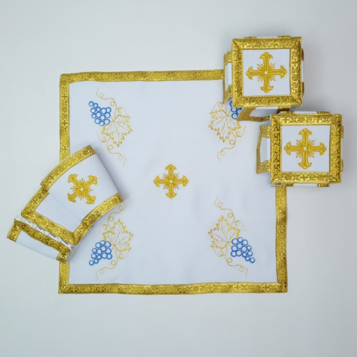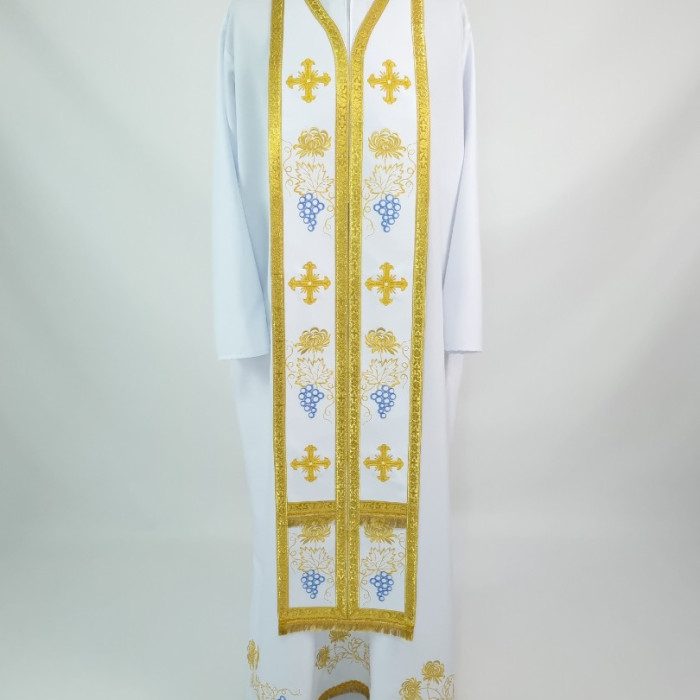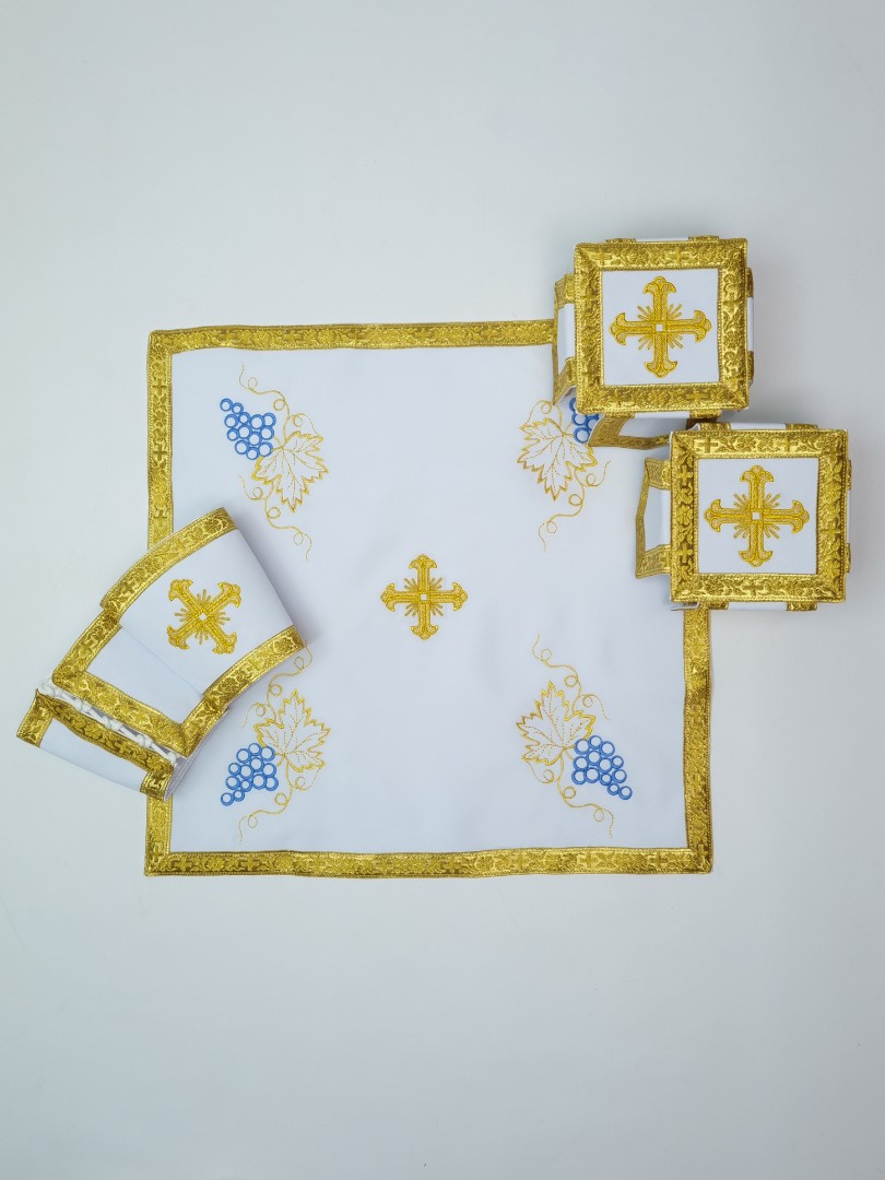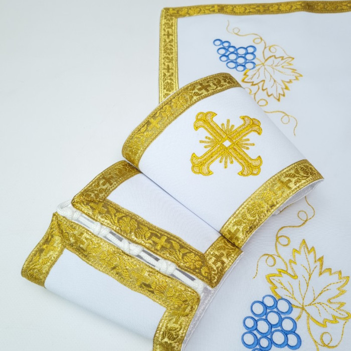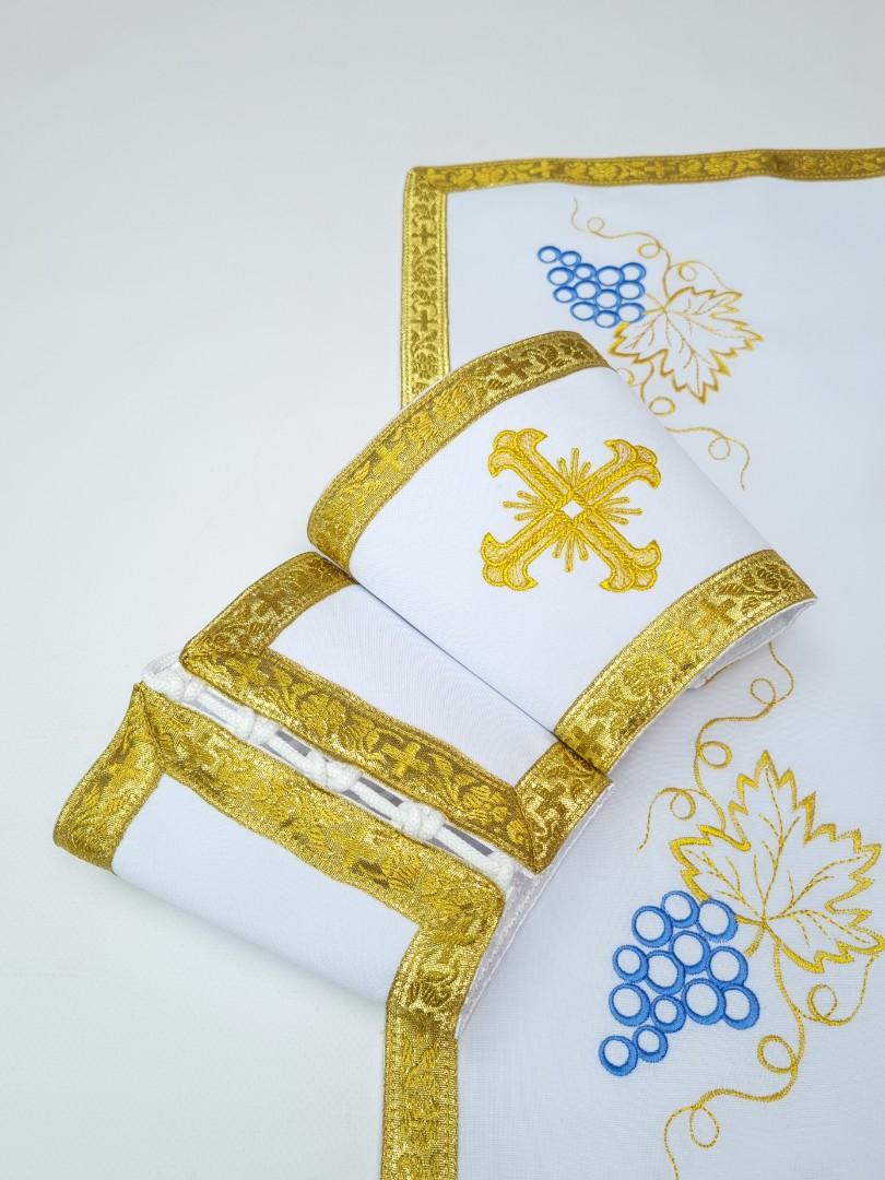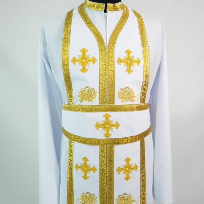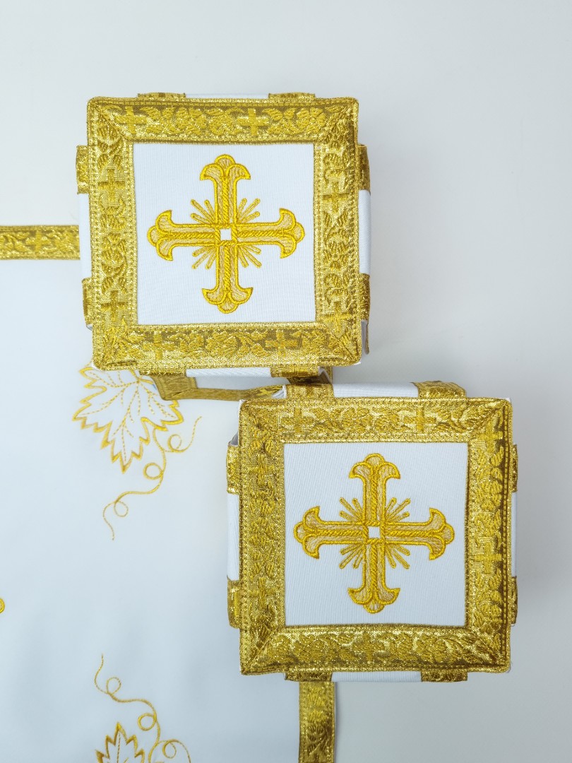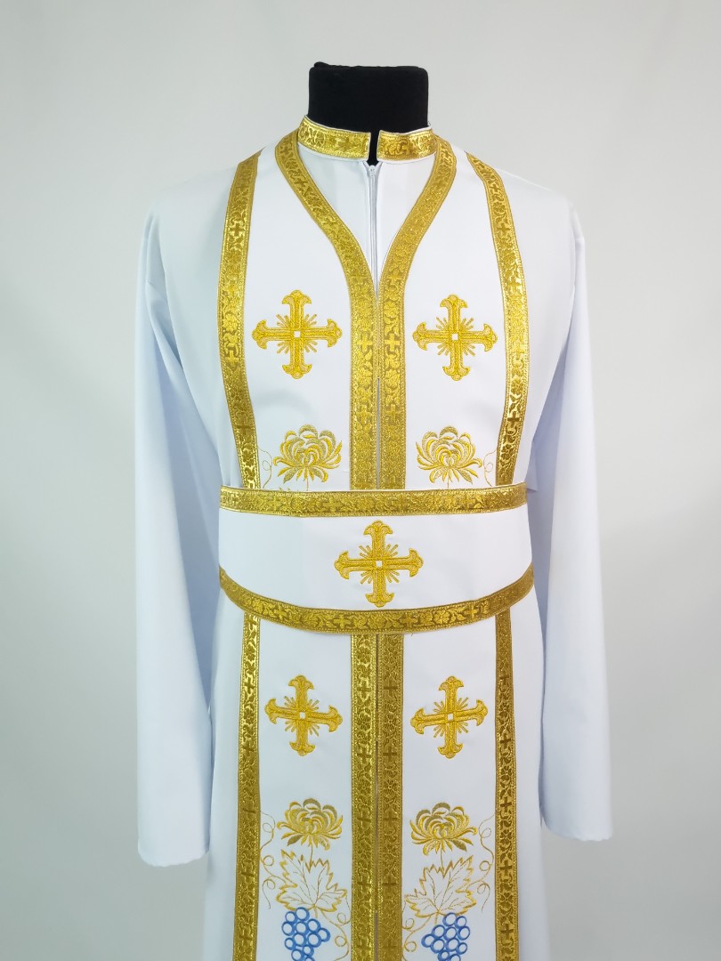 - Церковний одяг з вишивкою комплектується і іншими церковними атрибутами, прикрашеними вишивкою в тому ж стилі і кольорі: поясом, повітрям, покровом, нарукавниками, єпитрахиллю, стихарем.