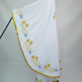 - Пошитий з білої тканини габардин, він прикрашений вишивкою шовковими і люрексовими нитками.