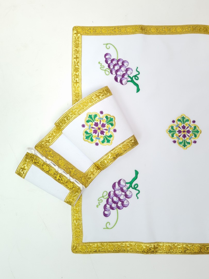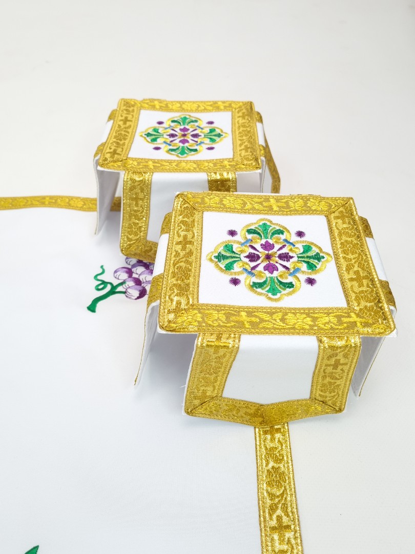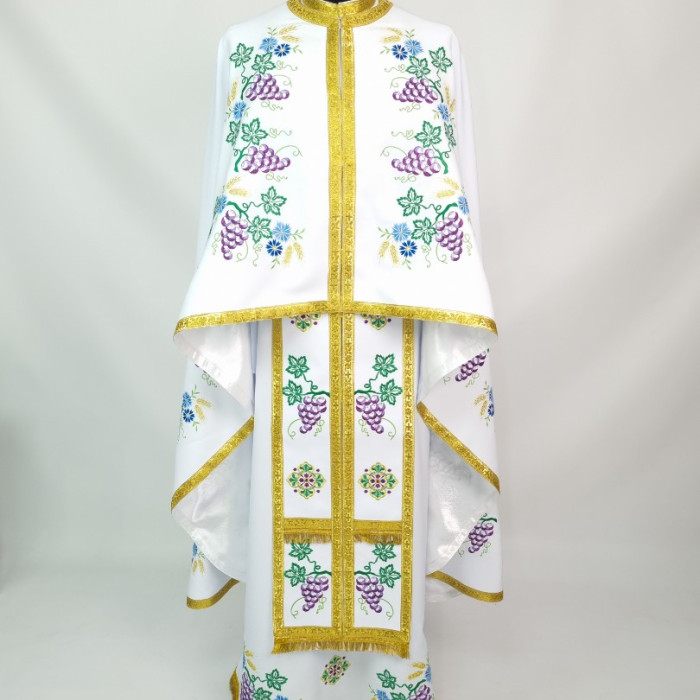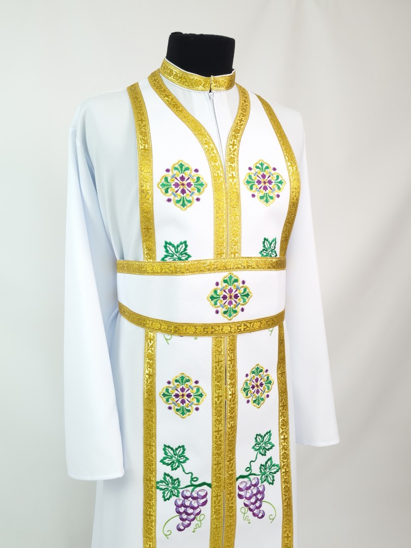 - Замовити церковний одяг пропонується в комплекті з повітрям, поясом, нарукавниками, стихарем, єпитрахиллю, покровом, які включені в ціну і мають аналогічне оформлення.