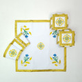 - Виріб декорований рослинним орнаментом з польових квітів (синіх волошок) і золотих колосків.