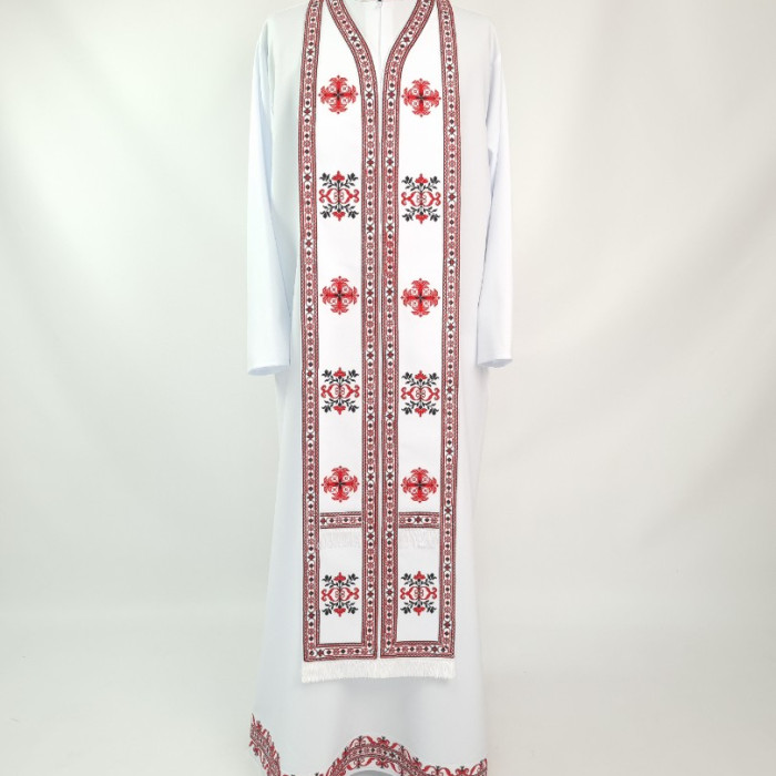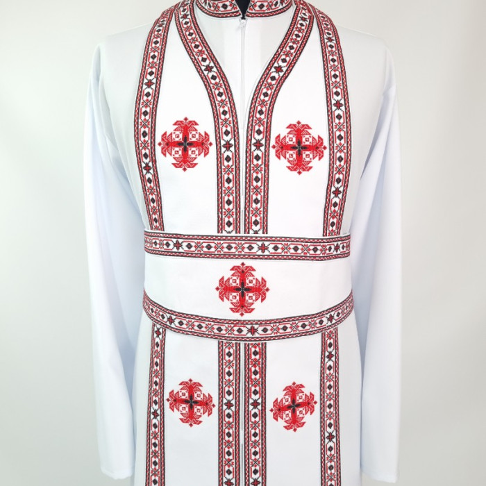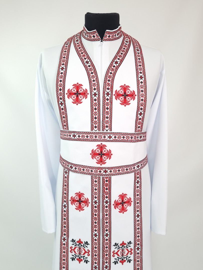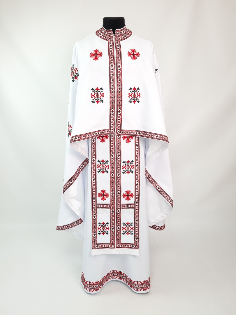 - У продаж надходить набір церковних атрибутів, до яких відносять пояс, повітря, епітрахиль, нарукавники, покрив і стихар.