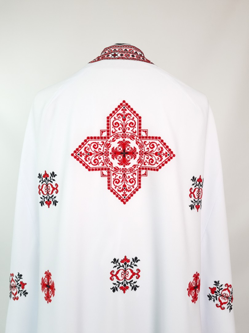 - Орнамент - рослинний упереміш з хрестами - нанесений на всю поверхню священицького одягу.