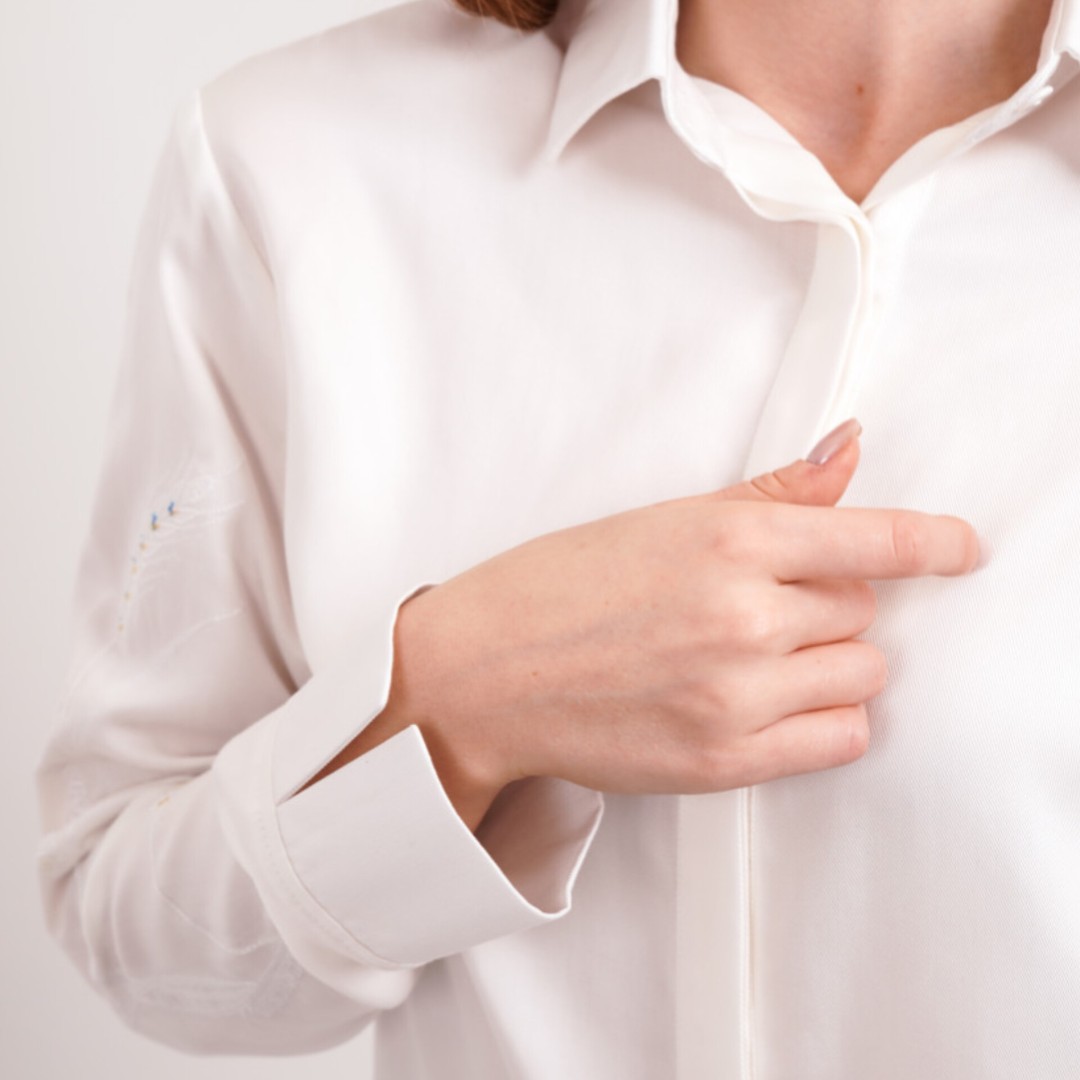 Блузка "Сила" (біле на білому) – це поєднання витонченості, легкості та символічності. Цей варіант ідеально підійде тим, хто цінує ніжність і мінімалізм, але не забуває про особливий сенс у кожній деталі.