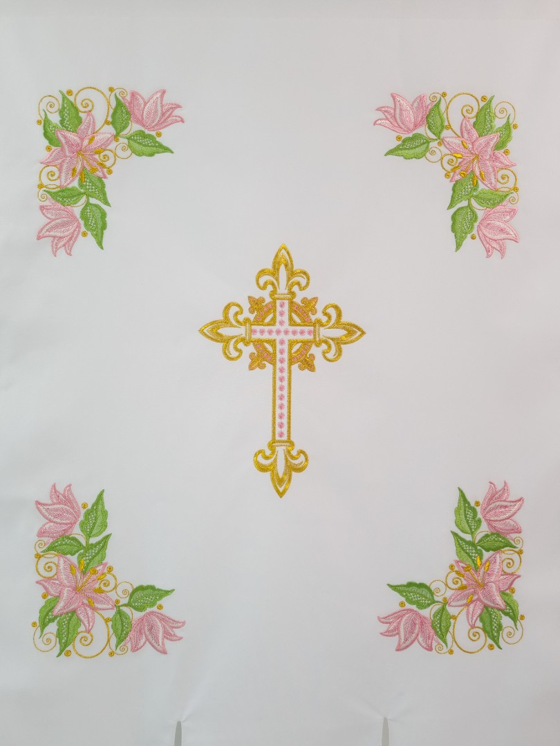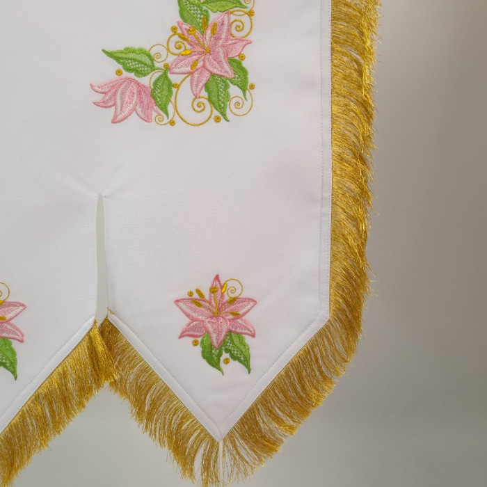 - Церковний атрибут прикрашений машинною вишивкою, виконаною строкатими нитками.