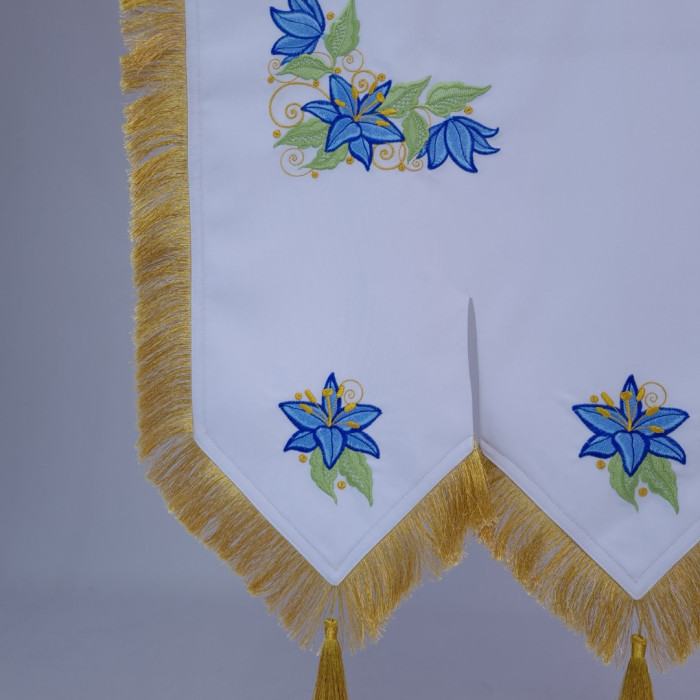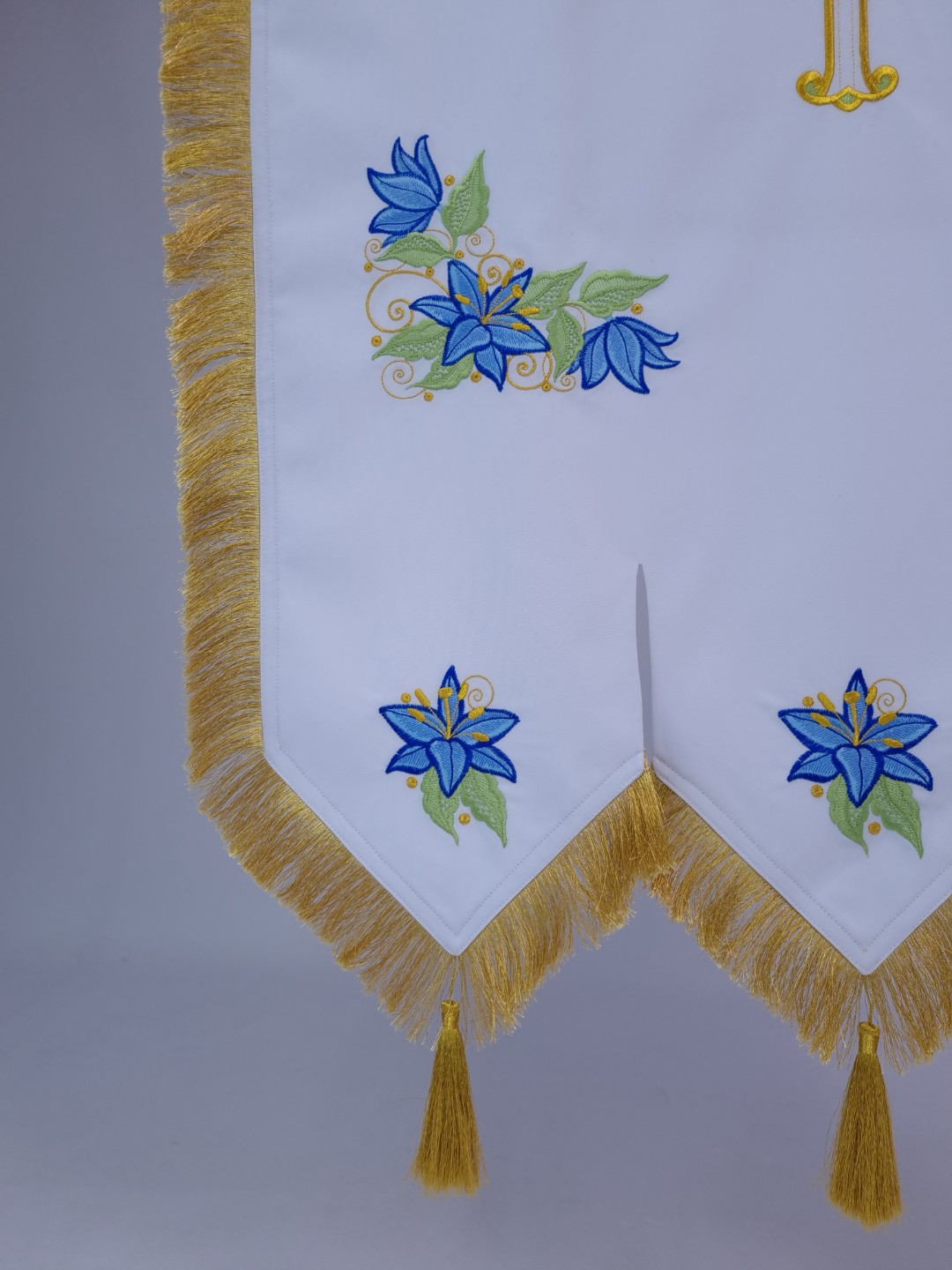 - Церковний атрибут прикрашений машинною вишивкою, виконаною строкатими нитками.
