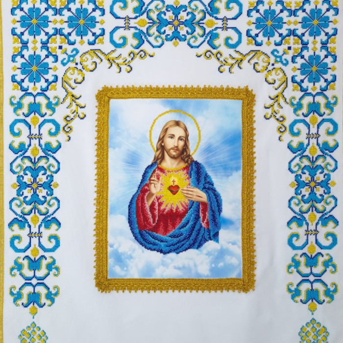 Вишиту бісером хоругву пропонує купити український виробник «Від щирого серця», чия продукція в асортименті представлена на вітринах нашого он-лайн магазину.